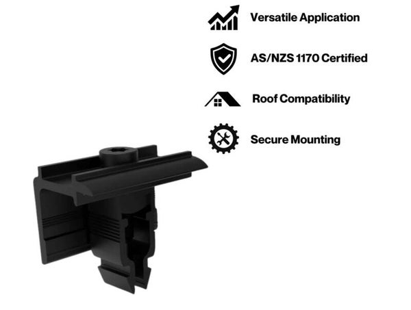 - Sleek Appearance: Finished in a sleek black, this mounting solution not only delivers reliable functioning but also improves the roof's aesthetic appeal. Its sleek shape allows it to mix in with a variety of roofing designs, contributing to the overall visual attractiveness.